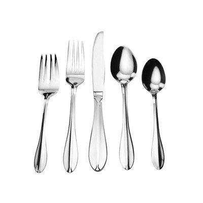 [Product Information]- Notice the European style of the salad fork coupled with the traditional shape of the dinner fork, knife and spoons. Just enough detail on this mirror finish pattern to make it interesting