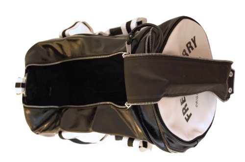 Product Description This classic PVC barrel bag is crafted with cotton canvas trims and an additional zip up compartment at one end. Featuring an outer slip pocket and inner zipped pocket; this spacious barrel bag is ideal for a training session or overnight stay. Complemented by two grip handles, an adjustable shoulder strap and Fred Perry branding on one end, as well as our signature Laurel Wreath embossed in gold coloring. Pair with traditional bomber jackets and jersey shirts this season for vintage sports design. 0