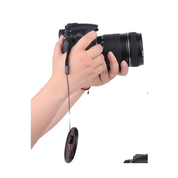 ・商品説明本体1点ストラップをカメラに取り付け、円形部分の両面テープを剥がしキャップに貼り付けるだけです。