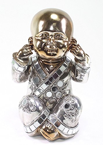 7.5" Feng Shui Bronze Hear No Evil Buddha Monk Electroplated Home Decor Statues