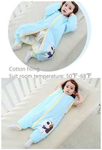 Product Description Luyusbaby sleeping sack is separate leg design for free movement. Baby can walk safely in this sleep sack when awake and feet can be put inside the sleeping bag during sleep. Super soft organic cotton sleeping sack is designed to replace loose blankets from the crib. Zipper with zip pad prevent baby chewing. Also for easy diaper change and dressing. Creates a safe and comfortable sleep environment, keep warm but not over-heated. please check the size detail image before ordering. 0