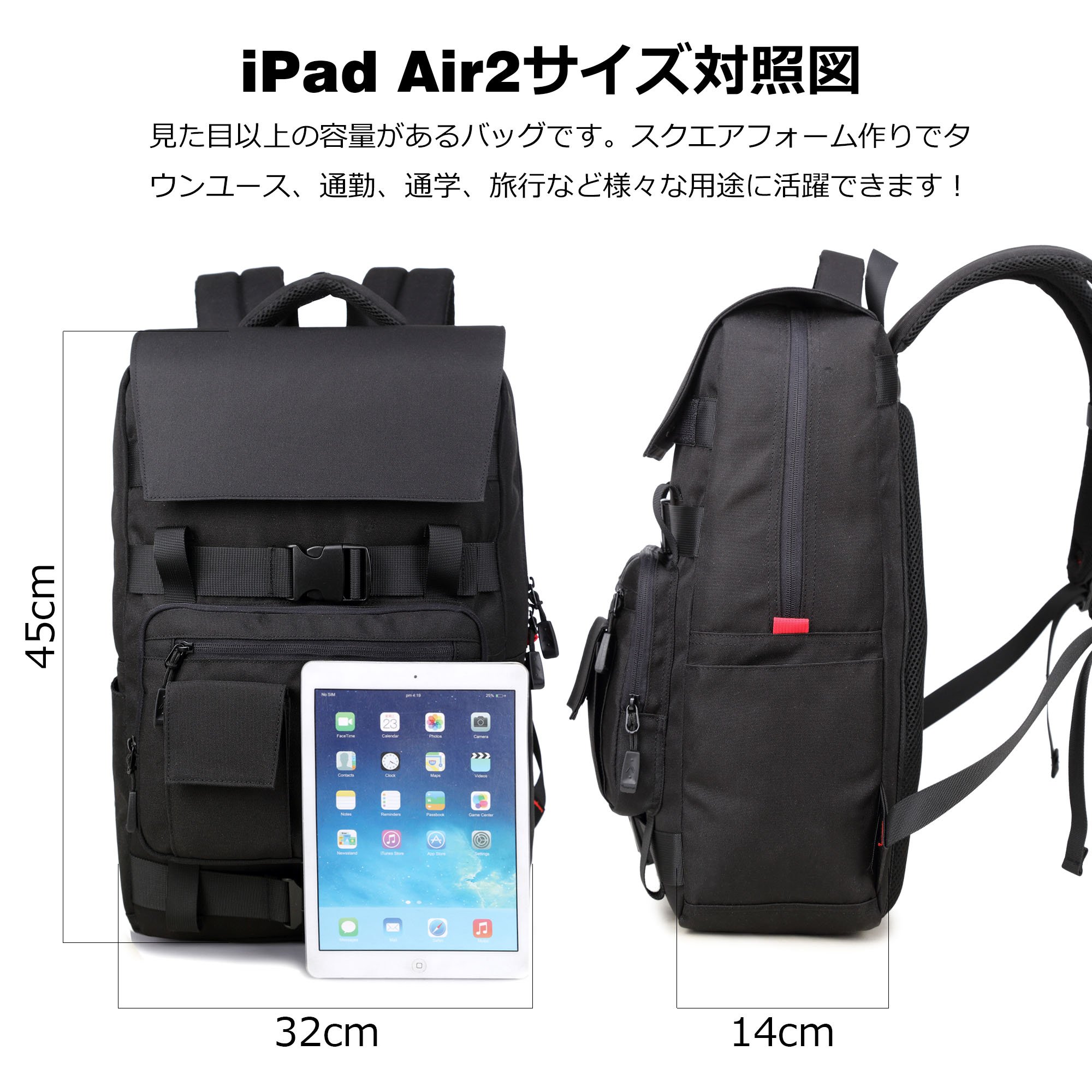 · The main air chamber is equipped with a PC pocket that can accommodate a 15-inch personal computer.