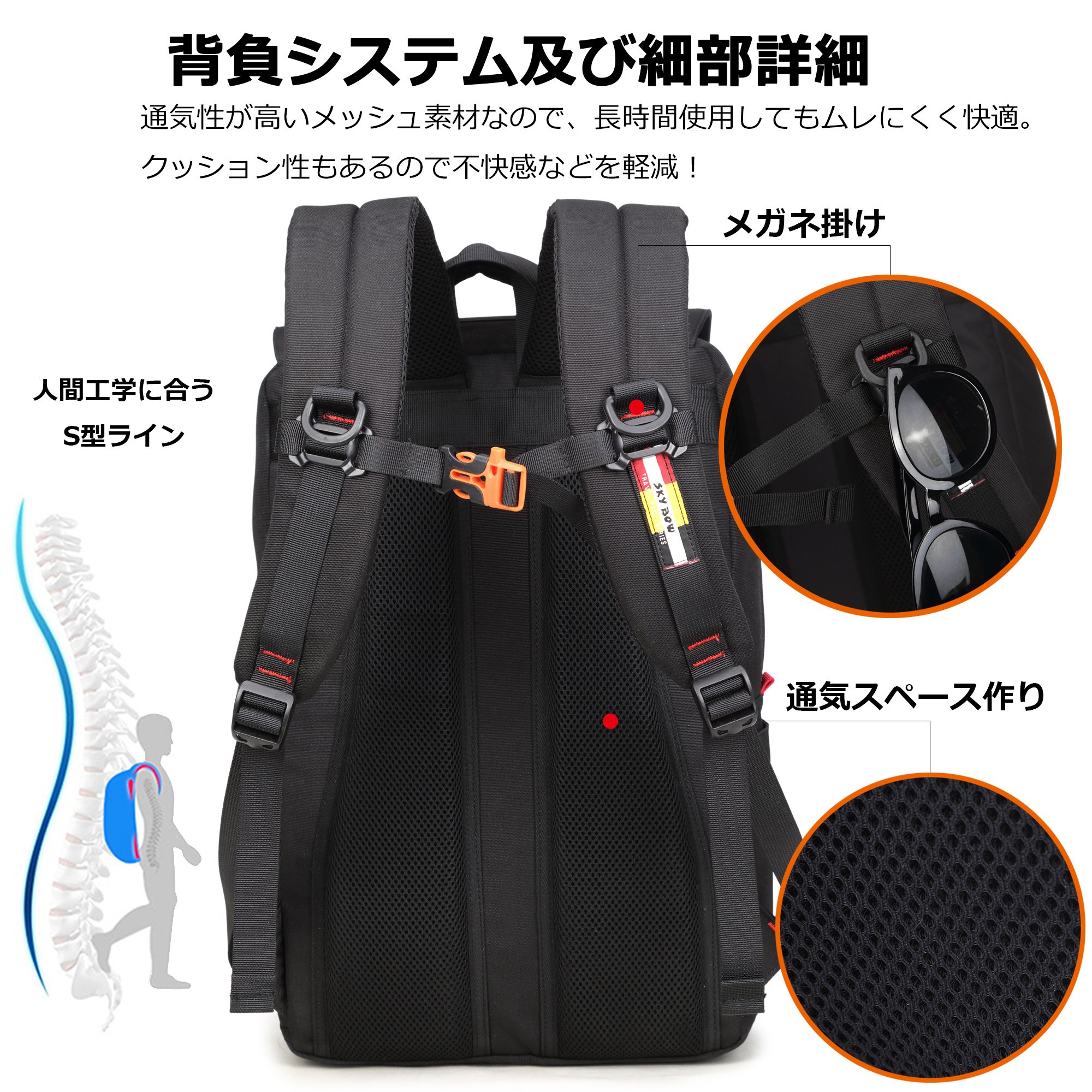 · 3D stereoscopic mesh pads used on the left and right of the back can reduce the contact area between the back and the bag and encourage air exchange to help sweat and heat dissipation.