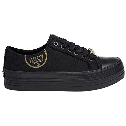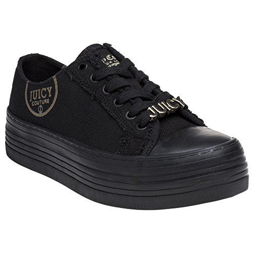Product Description The ladies Zolah trainers are edgy styling from Juicy Couture, featuring premium black canvas uppers on a chunky flatform sole and iconic Juicy branding details to the quarter and a gold metallic lace jewel. 0