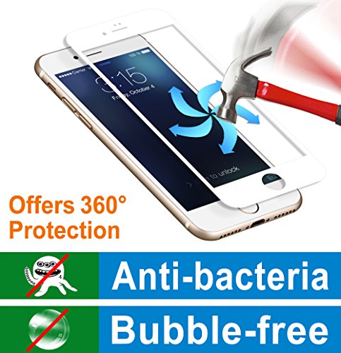 iPhone 7 Plus Full Coverage Screen Protector, BENOKER Tempered Glass Screen Protector for iPhone 7 Plus - 9H Hardness, High Definition, Bubble Free, Anti-Scratch (White)