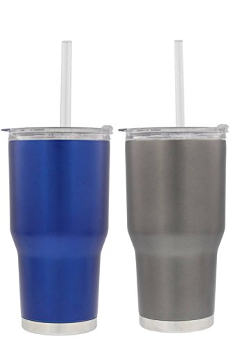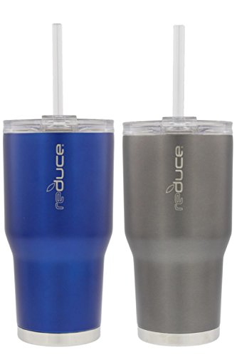 reduce COLD-1 Vacuum Insulated Thermal Tumbler with Two Extra Straws, 30oz - Satin Grey & Blue (2 Pack)