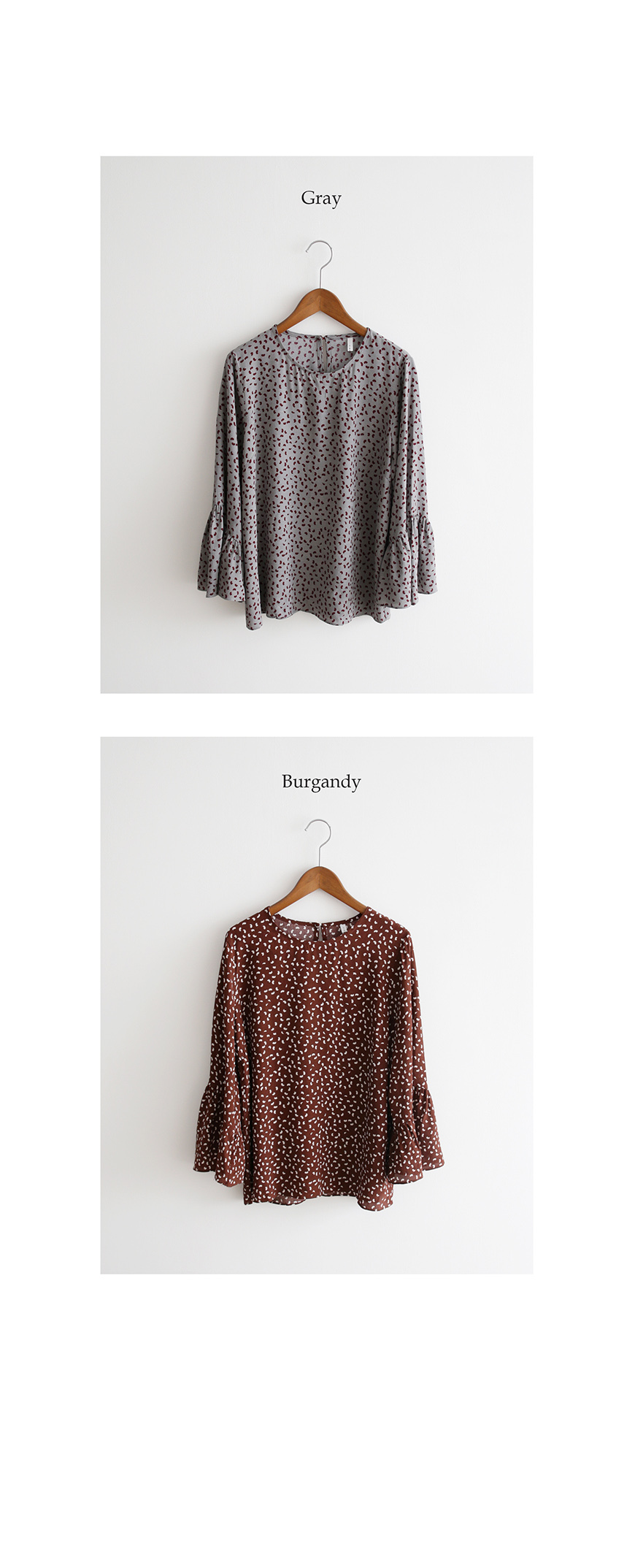 가벼운 소재감에 잔잔한 패턴이 귀여운 블라우스예요~^^