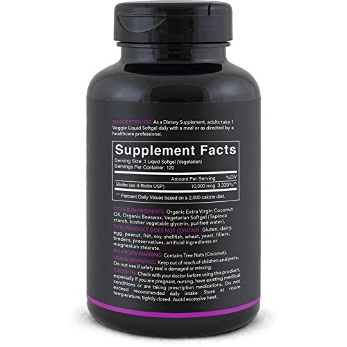 Featuring 10,000iu of Biotin per mini-veggie softgel with Cold-Pressed Organic Coconut Oil.