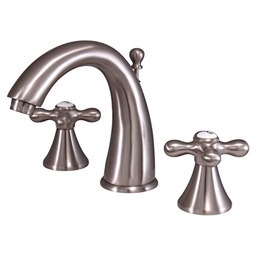 Kingston Brass KS2978AX Naples Widespread Lavatory Faucet with Metal Cross Handle, Satin Nickel