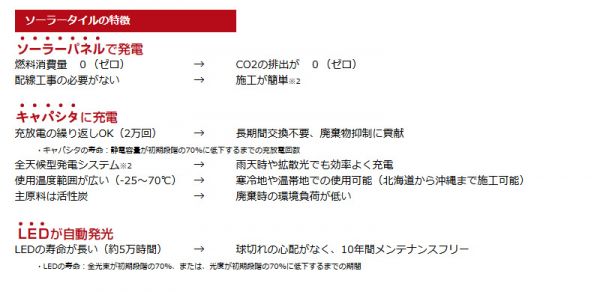 ●環境に優しいクリーンな太陽エネルギーを利用したソーラーLEDタイルです
