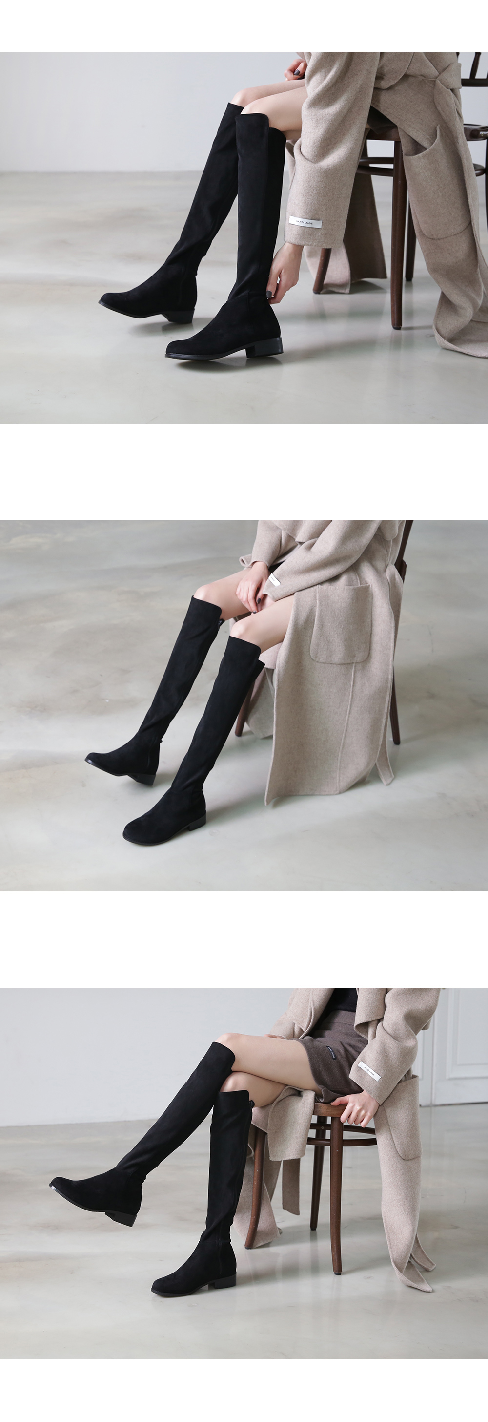 生地とカラーまで製造されたロングブーツのメインデザインです。
