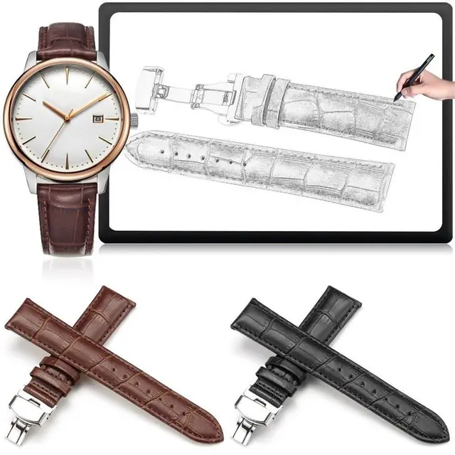 | [해외]1 개 정품 가죽 시계 줄 패션 클래식 교체 시계 스트랩 스테인레스 스틸 butterfly 걸쇠 버클 16mm24mm 시계 |