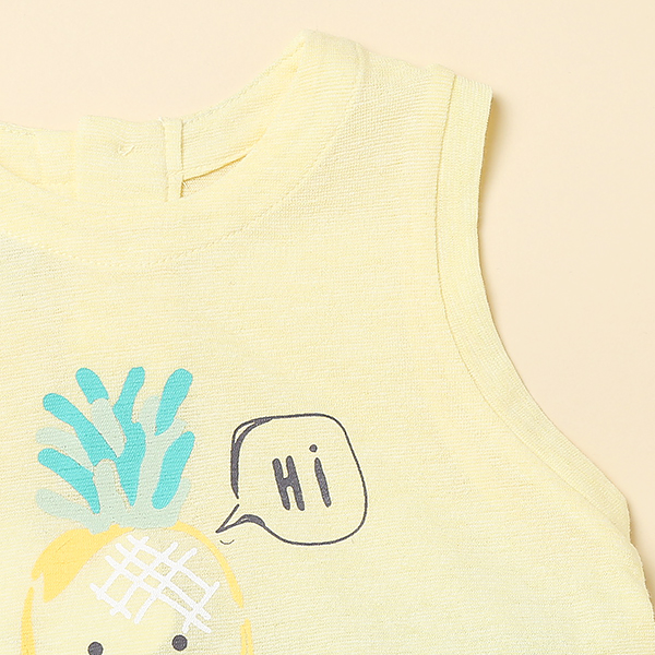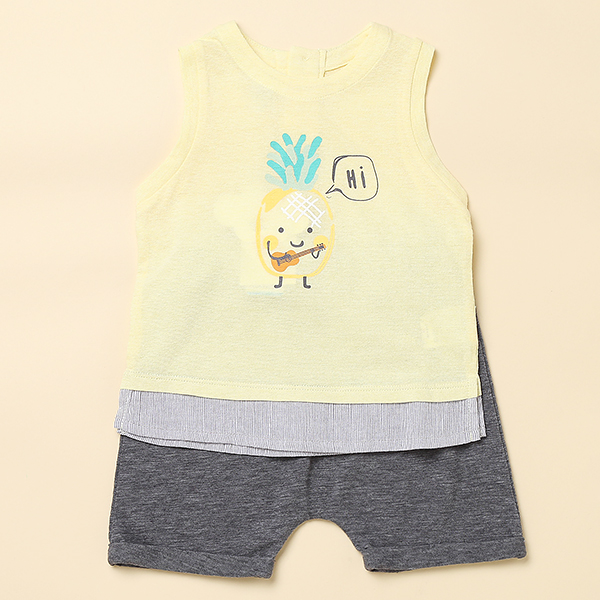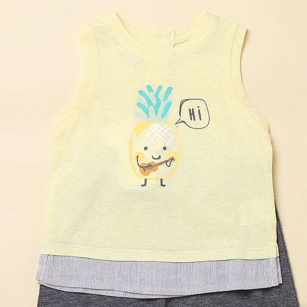 우븐 스트라이프 배색으로 고급스러움을 더하고 파인애플 나염으로 큐트함을 강조 합니다.