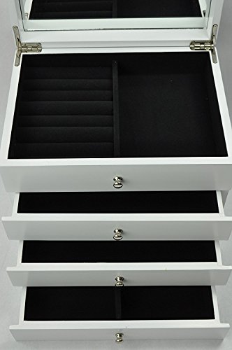 Uniware Elegant Jewelry Box with 4 Drawers and Up-right Mirror, White