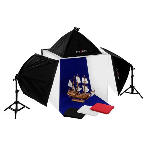 Fotodiox Pro 28x28" Studio-in-a-Box for Table Top Photography, Light Tent, Case, 3 Softbox Lights, 4 Backdrops