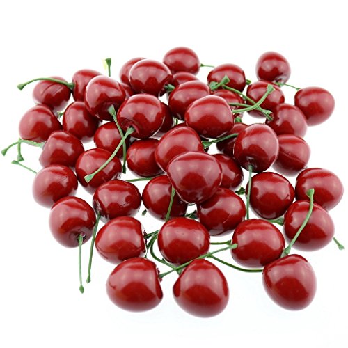 R.FLOWER 50pcs Artificial Lifelike Simulation Small Red Cherries Set Decoration Fake Fruit Home House Kitchen Décor
