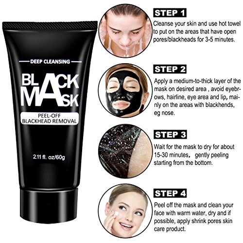 DEEP CLEANSING, REMOVE BLACKHEADS, ACNE TREATMENT, OIL CONTROL, SMOOTHEN AND SOFTEN SKIN TEXTURE - Our Charcoal Peel off Mask can remove dulling surface cells and impurities, eliminate the blackheads, pull out the hidden whiteheads, clean the stubborn acne, absorb excess oil and dirt inside the skin, deeply cleansing and purifying the skin, while vitamins and the plant extracts help shrink pores and soften the skin to restore a smooth and delicate skin.