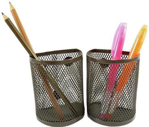 COOL MAGNETS: Organize your pens and pencils in these handy mesh holders and then stick them to any magnetic surface such as lockers, fridges, file drawers, or your dry-erase boards. They help keep your essentials close at hand. This set of 2 half moon shaped pencil holders (3.7" x 2.8") come in chocolate brown. Colored pencils and highlighters are for demonstration purposes only and not included.