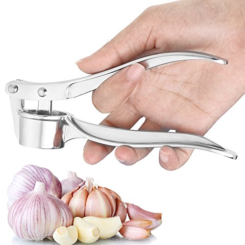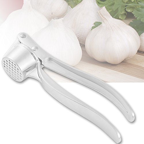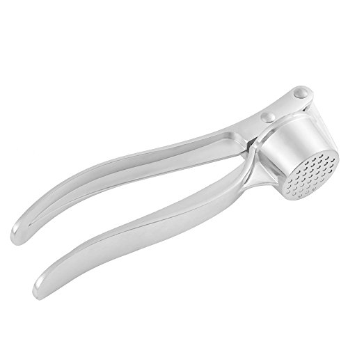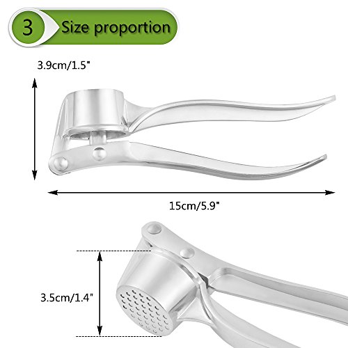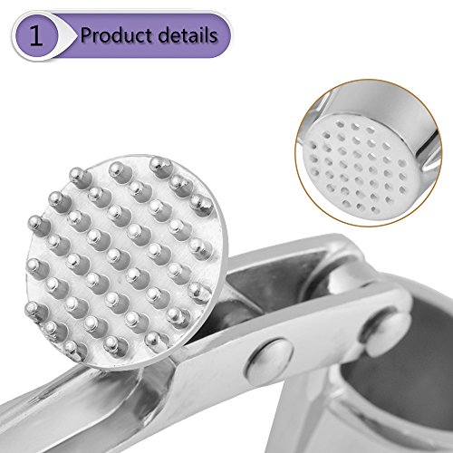 SOLID CONSTRUCTION. This garlic press is made of solid and high quality stainless steel, durable and sturdy for long-time using. No longer worry about the corrosion problems and smelling garlic accent after you wash it.