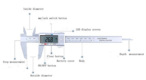 NERISSA Electronic Digital Caliper with Extra Large LCD Screen | 0 - 6 Inches | Inch/Millimeter Conversion