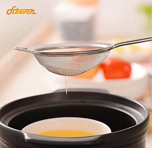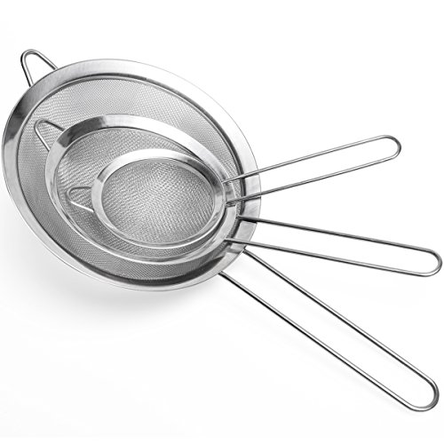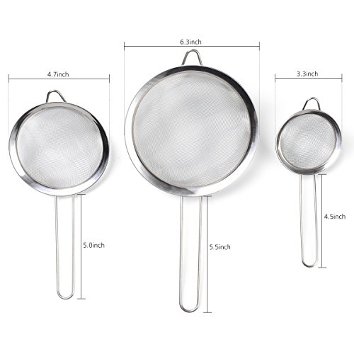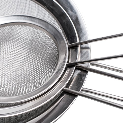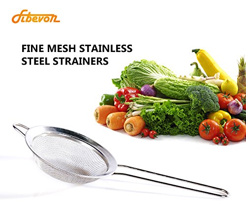 Fibevon Fine Mesh Stainless Steel Strainers, Silver, Set of 3 Colander Sieve With Handle