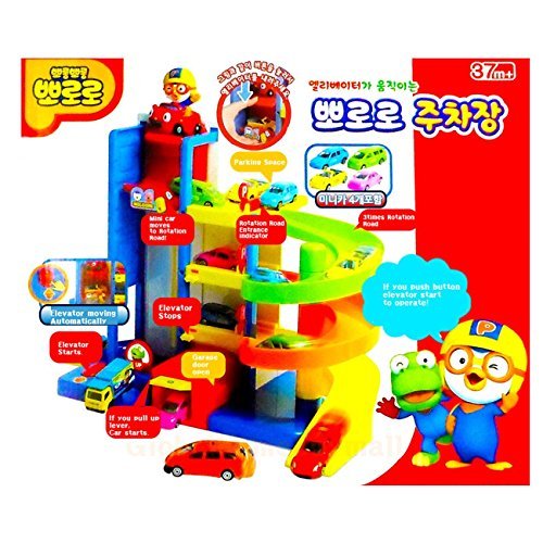 -. Binding : Toy -. Brand : Pororo -. EAN : 0603895774645 -. Feature : Garage elevator moving automatically. / Connected from each story into 3times roatation road. / Encourage kids to have quriosity and concentration with various operation function and play elements. / Pororo mini cars 4ea are included. / Recommended age : more than 37months. -. IsAdultProduct : 0 -. Label : Pororo -. Manufacturer : Pororo -. ProductGroup : Toy -. ProductTypeName : TOYS_AND_GAMES -. Publisher : Pororo -. Studio : Pororo -. Title : Pororo Parking Tower Car Toys with Elevator 3 Story Building including mini Car 4ea -. UPC : 603895774645