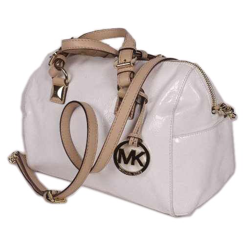 -. Brand : Michael Kors -. Color : White -. Department : womens -. EAN : 0678021477882 -. Feature : 12" length, 9" height, 7.5" depth / handles drop 5"; detachable shoulder strap 21.5" drop / Interior lining with a back-wall zip pocket, slip pockets and key fob. / Buckled handles with a removable, adjustable crossbody strap. / Zip top closure; Exterior features side slip pocket on each end -. ProductGroup : Shoes -. ProductTypeName : HANDBAG -. Size : Medium -. Title : Michael Kors White Grayson Medium Pocket Logo Monogram Embossed Mirror Metallic Satchel -. UPC : 678021477882