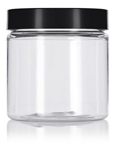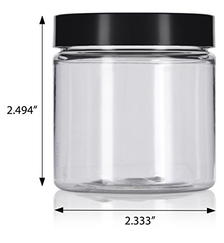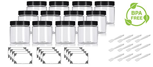 4 oz Clear Plastic PET (BPA Free) Travel Jar with Black Smooth Lid- (12 Pack) + Spatulas and Labels