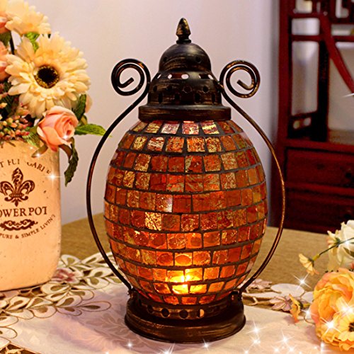 -. Binding : Kitchen -. Brand : Fjfz -. Feature : Striking Center Piece for Table or Mantel / Romantic subtle feelings / Candles are not included / Designed by Real Artists, Hand Made in India / Perfect for holiday season -. IsAutographed : 0 -. Label : Fjfz -. Manufacturer : Fjfz -. ProductGroup : Home -. ProductTypeName : HOME -. Publisher : Fjfz -. Studio : Fjfz -. Title : Fjfz Decorative Vintage Partylite Coloful Mosaic Glass Wrought Iron Tea Light Candle Holder Hanging Hurricane Lantern, Amber