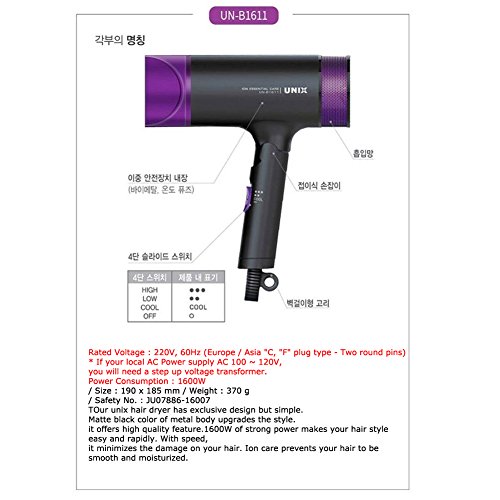 원본상품명: UNIX ION HAIR DRYER UN-B1611 1600W 220V 60Hz UNIX ION HAIR DRYER UN-B1611 1600W 220V 60Hz [行輸入品]