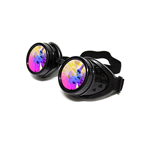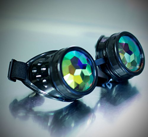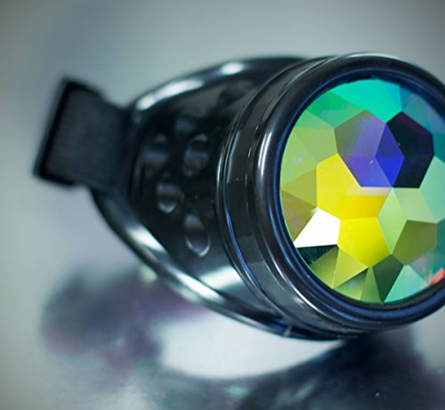 Wrap your reality into a fractal paradise with our GloFX Kaleidoscope Goggles. Our Black Kaleidoscope Goggles will suck you into an experience that you cannot experience anywhere else. We have taken our Flat Back Kaleidoscope crystals and outfitted them into our GloFX Goggles. These goggles feature our high quality optical grade glass crystals that will send your vision into a prismatic rainbow for a truly immersive experience. By blocking out all exterior light, our Kaleidoscope Goggles provide an unparalleled experience that has to been seen in person to truly understand. Plus you wont have to worry about loosing these awesome goggles, each pair is assembled with an adjustable headband so you have focus on having fun. Take a look at all of our models and make sure your ready for your next EDM rave!Feature