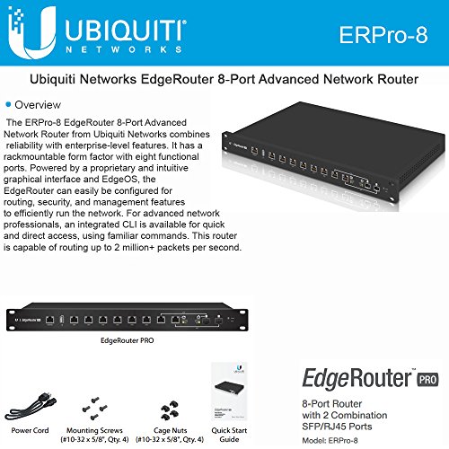 The EdgeRouter is rack mountable and has 6 Ethernet ports and 2 SFP ports, that offers Higher performance 2M packets per second and powerful EdgeOS software