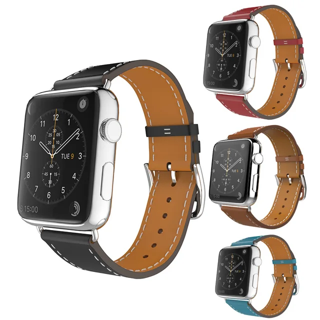 | [해외] 애플 시계 밴드 가죽 블루 럭셔리 정품 손목 팔찌 교체 손목 밴드 어댑터 걸쇠 iWatch 스트랩 |