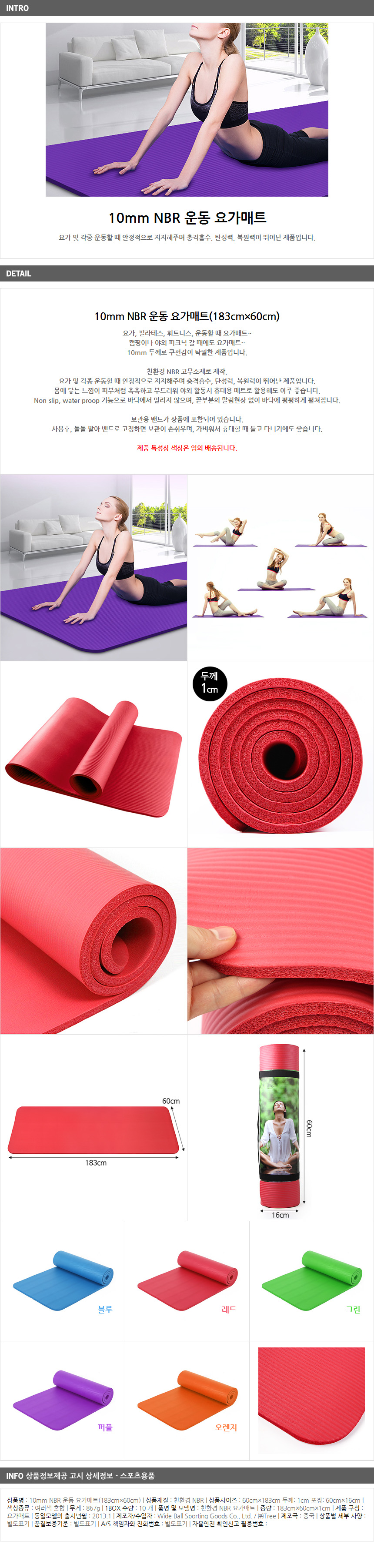 10mm NBR exercise yoga mat (183cm × 60cm) Pilates