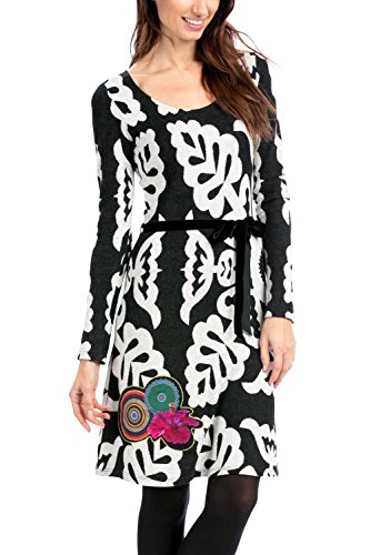 Women's autumn winter knitted dress short sleeve with a colorful Desigual print
