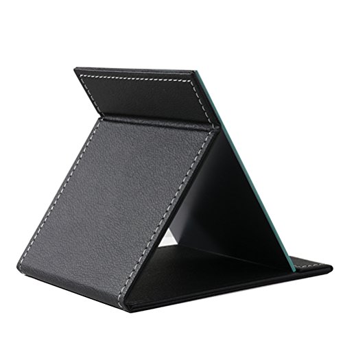 JOLY Protable PU Leather Mirror Folding Desktop Makeup Mirror with Adjustable Stand for Personal Use,Travelling (L, Black)