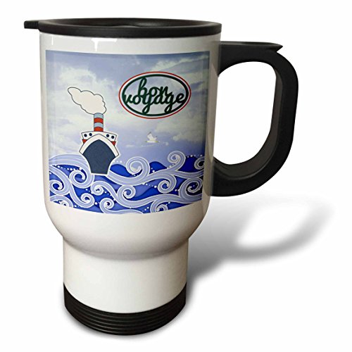 3dRose tm_196056_1 Bon Voyage, Cruise Ship on Big Blue Waves Travel Mug, 14-Ounce, Stainless Steel