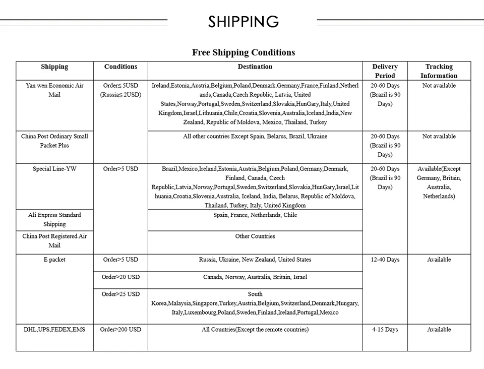 Dropshipping:Yes (without invoice and store's information)