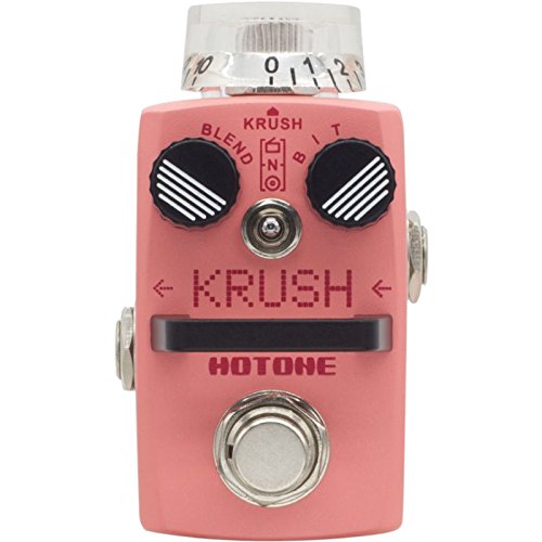Studio : Hotone Audio Publisher : Hotone Audio Binding : Electronics Product Description Krush Bit crusher/sample rate reducer Krush is a compact-sized bit crusher/sample rate reducer stomp box. This pedal features a variable, flexible and sweet-sounding digital down sampler with 3 different modes: radio simulator, neutral mode, and vintage phonograph simulator. Each mode downgrades the original signal in a very musical fashion. Sampling rate: 750-44100 Hz Bit depth: 5-16bits True bypass footswitch Zinc alloy outer cover Transparent top knob and 2 noctilucent small knobs Cool LED lights Current consumption: 60ma Dimensions: 74mm (d) x 44mm (w) x 44mm (h) Weight: 190 g. 0