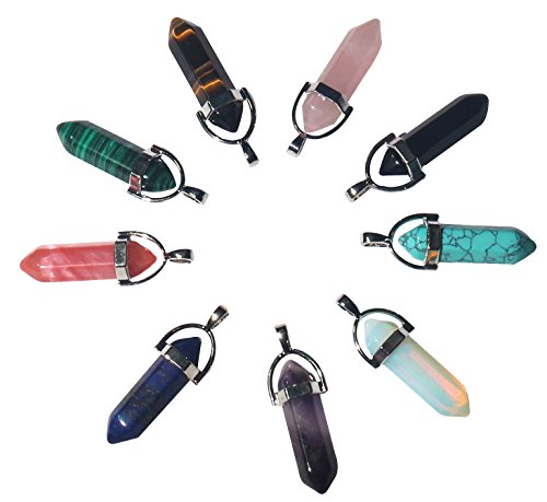9 Piece Crystal Hexagonal Healing Point Pendant Chakra Cut Gemstone Pendant