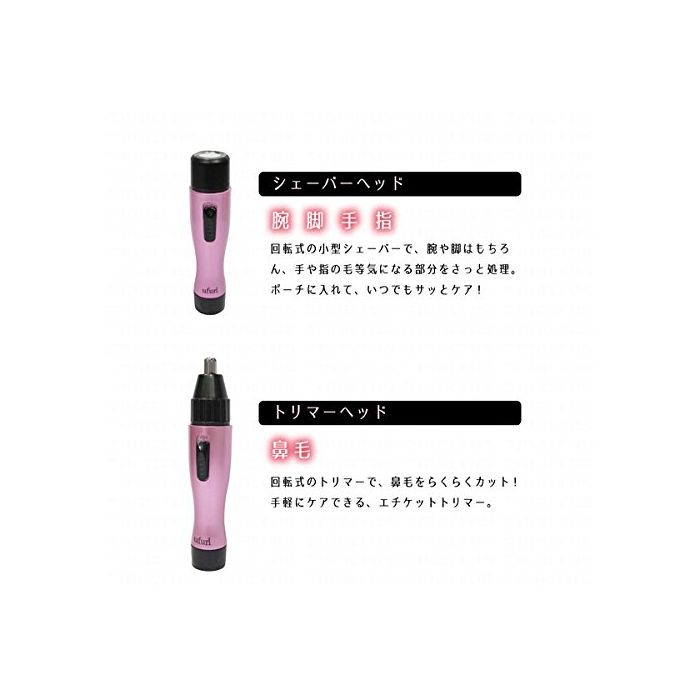 【2in1 다용도】:턱,순상부,오데코의 탈모,및 손이나 다리나 겨드랑이의 털이나《비기니라인》등의 털취에 편리합니다.비모커터 부착,비털의 청결도 간단합니다.전신의 어디에서라도 버튼 하나에 쓸모 없는 털을 처리에 옵니다.