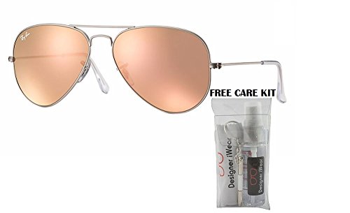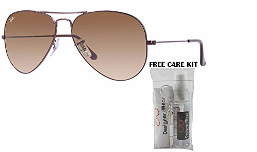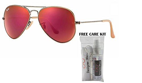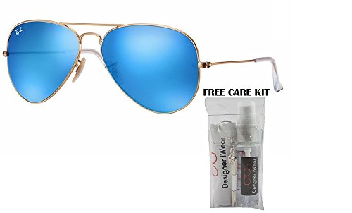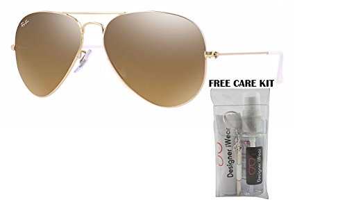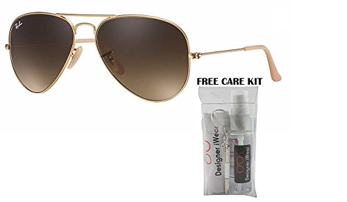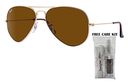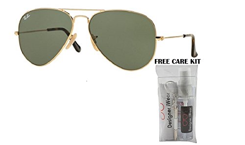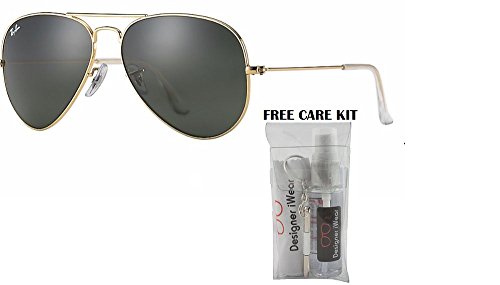 Currently one of the most iconic sunglass models in the world, Ray-Ban Aviator Classic sunglasses were originally designed for U.S. aviators in 1937. Aviator Classic sunglasses are a timeless model that combines great aviator styling with exceptional quality, performance and comfort. With a classic frame, you can see the world through a variety of lens colors including crystal brown, crystal green, G-15 and more that provide optimum visual clarity and 100% UV protection. Let Designer iWear add some instant fun to your wardrobe! This FREE complimentary care kit arrives to you in authentic Designer iWear packaging so you can buy with confidence. This super special kit includes authentic Ray-Ban RB3025 frames, Designer iWear cleaning spray and cloth, mirror and mini screwdriver, to keep your new frames as fabulous as the day you bought them! All Sunglasses Come complete with Original Manufacturers Case, Cloth, and Booklet/Authenticity card when applicable. Please note case style and or color can vary.Feature