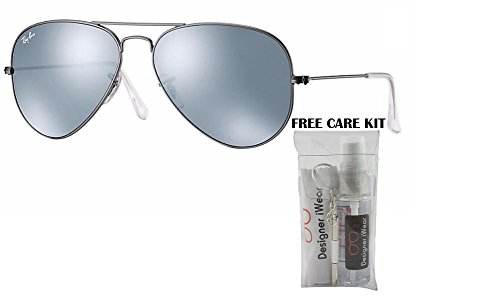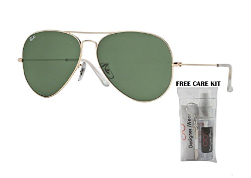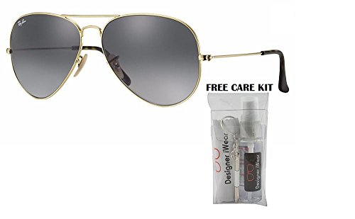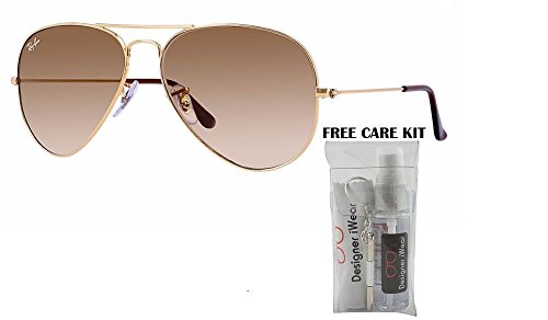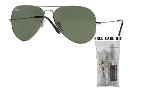 Kit of 2 Items - Includes Ray Ban RB3025 Metal Aviator Sunglasses and FREE eyewear care kit