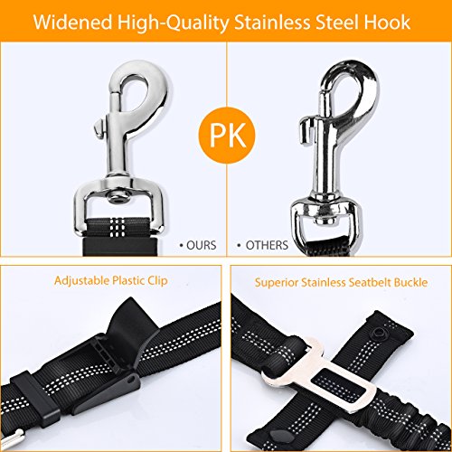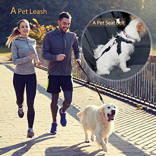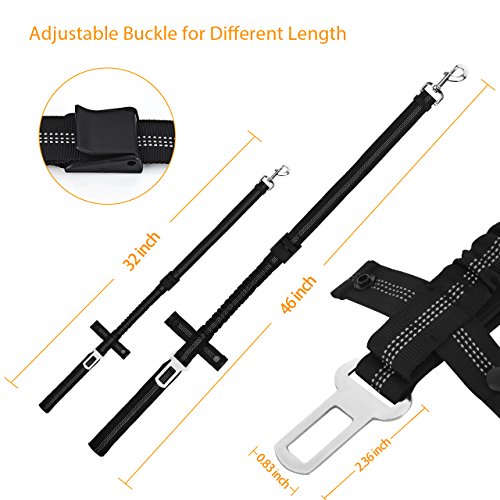 Fit Any Pet, Any Car You can open the adjustable buckle to pull it to the suitable position and then to lock it to freely adjust the length from 32 to 46 inches (82-117cm), which makes it fit different sized pets. The seatbelt clip is about 0.83 inch (2cm), which is compatible with most vehicles and can be easily attached into your car.