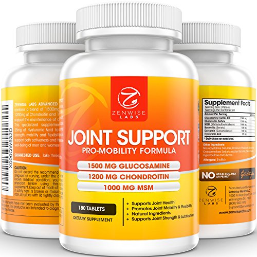 JOINT SUPPORT - COMPLEX OF 1500MG GLUCOSAMINE, 1200MG CHONDROITIN, 1000MG MSM & HYALURONIC ACID FOR ADVANCED RELIEF - MOBILITY HEALTH SUPPLEMENT FOR PAIN, ACHES, SORENESS & INFLAMMATION - 180 TABLETS