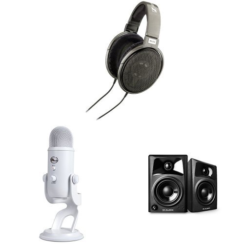 Sennheiser HD 650 Open Back Professional Headphone Bundle with Yeti Microphone and M-Audio Studio Monitor Speakers