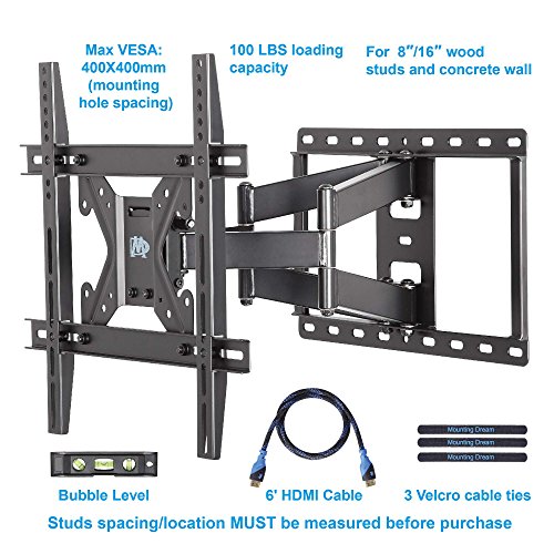 -. Title : Mounting Dream MD2296-M Full Motion TV Wall Mount Bracket with Dual Articulating Arms, 100 LBS Loading Capacity, Max 400 x 400mm VESA, Fits Most of 26-55 Inches LED, LCD and Plasma TV