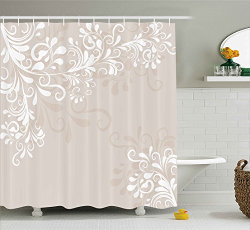 Oriental Decor Shower Curtain by Ambesonne, Floral Ivy Swirls Leaves Abstract Modern Frame like Artwork Image, Fabric Bathroom Decor Set with Hooks, 75 Inches Long, Cream Tan and White