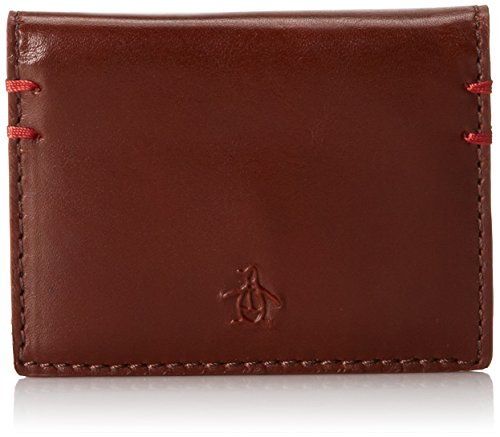Original Penguin Men's Leather Wallet with Contrast Stitch, Caramel Cafe, One Size