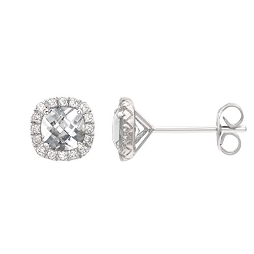 These checkboard cushion Garnet halo gemstone earrings are a perfect addition to any jewelry collection. The earrings are precisely crafted with a martini style back to sit perfectly on your ear. The rich vibrant Garnet stones are 5mm round and cut to perfection and the surrounding halo is set with diamond-cut 1mm round created white sapphires that provide "diamond-like" brilliance. The Sterling Silver is rhodium plated to enhance the high polished metal.Feature